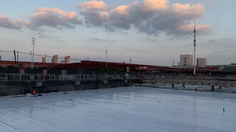 宿松路快速化改造工程地處城市建成區(qū),周邊環(huán)境復(fù)雜,施工面臨地下管網(wǎng)縱橫交錯、基坑開挖深度大、結(jié)構(gòu)防裂、防水要求高等難題。面對復(fù)雜而苛刻的條件,安徽交建項目部實現(xiàn)了多項行業(yè)“首創(chuàng)”:針對市政干作業(yè)基坑圍護(hù)樁垂直度控制不佳,我部采購2臺RSM-HGT(D)型超聲波成孔質(zhì)量檢測儀對樁基垂直進(jìn)行檢測、及時糾偏;施工過程中使用全站儀對旋挖鉆機桅桿垂直度進(jìn)行檢查、糾偏;為有效控制地道側(cè)墻混凝土裂縫,選擇摻加ART-MPC無機納米抗裂密實劑,提高混凝土抗裂性。養(yǎng)護(hù)采用水能量節(jié)水保濕養(yǎng)護(hù)膜,將液態(tài)水轉(zhuǎn)化為固態(tài)水,通過毛細(xì)管作用,源源不斷的向養(yǎng)護(hù)面滲透,同時吸收砼水化熱過程中蒸發(fā)水,在一個養(yǎng)護(hù)周期內(nèi)保證養(yǎng)護(hù)體表面保持濕潤,相對濕度≥90%;為避免變形縫滲水情況,施工過程中增設(shè)一道中埋式止水帶。同時針對止水帶安裝及焊接等薄弱環(huán)節(jié)加強控制,安排固定人員培訓(xùn),舉辦焊接比賽,提升焊接技術(shù)。