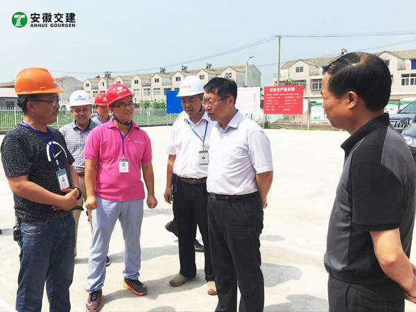 7月18日,安徽省交通控股集團(tuán)總經(jīng)理錢東升、建管處處長蘇新國、項(xiàng)目辦主任鄒正明等領(lǐng)導(dǎo)一行蒞臨安徽交建滁淮高速定長段路面一標(biāo)項(xiàng)目部進(jìn)行檢查指導(dǎo)。