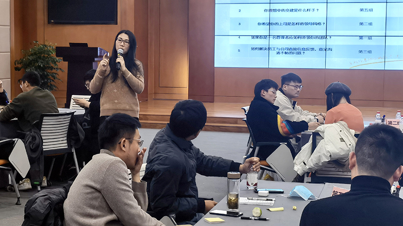 在共創(chuàng)會(huì)環(huán)節(jié),大家就“如何快速融入公司”、“你希望的領(lǐng)導(dǎo)風(fēng)格”、“假如你是管理者,如何帶好團(tuán)隊(duì)”等問題各抒己見并展開激烈討論。這一環(huán)節(jié)旨在促進(jìn)新員工的成長(zhǎng)和融入,讓大家深刻體會(huì)團(tuán)隊(duì)、責(zé)任、執(zhí)行的意義。