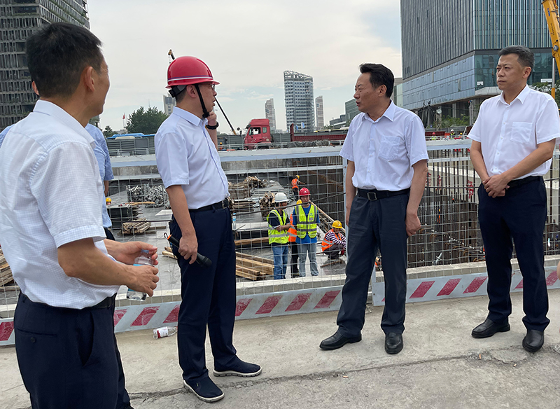 在宿松路下穿繁華大道施工現(xiàn)場,虞愛華聽取了項目概況、施工進(jìn)度等方面的介紹,對2標(biāo)段能夠在188天完成花園大道跨線橋建成通車給予了高度認(rèn)可。虞愛華對大建設(shè)工作者們在炎熱天氣下的辛勤付出表示真摯的慰問和感謝,并叮囑一線建設(shè)工人要注意勞逸結(jié)合和防暑降溫。他強調(diào),在統(tǒng)籌發(fā)展的同時,要高度重視安全管理,既要守住“看不見”的防疫安全,也要守住“看得見”的生產(chǎn)安全,堅決防范各類重大事故的發(fā)生。