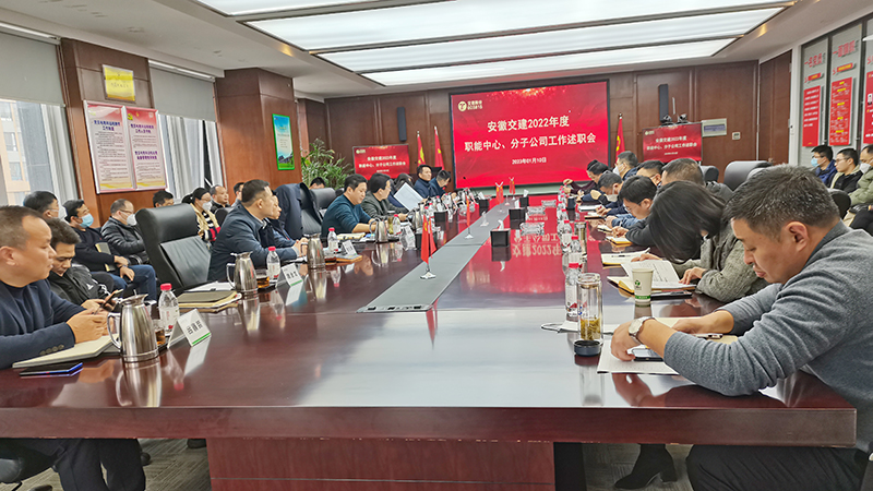 1月10日下午,安徽省交通建設股份有限公司2022年度職能中心和分子公司工作述職大會在總部20樓會議室召開,公司經(jīng)營班子、高管及各職能中心、分子公司負責人等參加了會議。