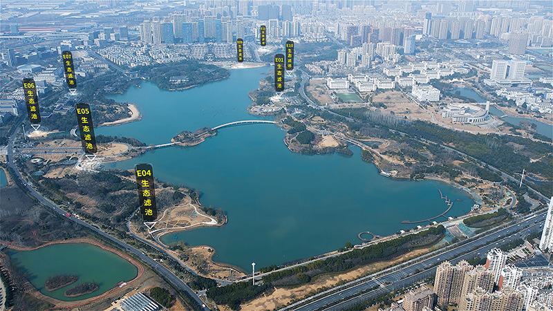 王建溝上游生態(tài)修復(fù)工程現(xiàn)場(chǎng)生態(tài)濾池布局圖(翡翠湖風(fēng)景區(qū)內(nèi))