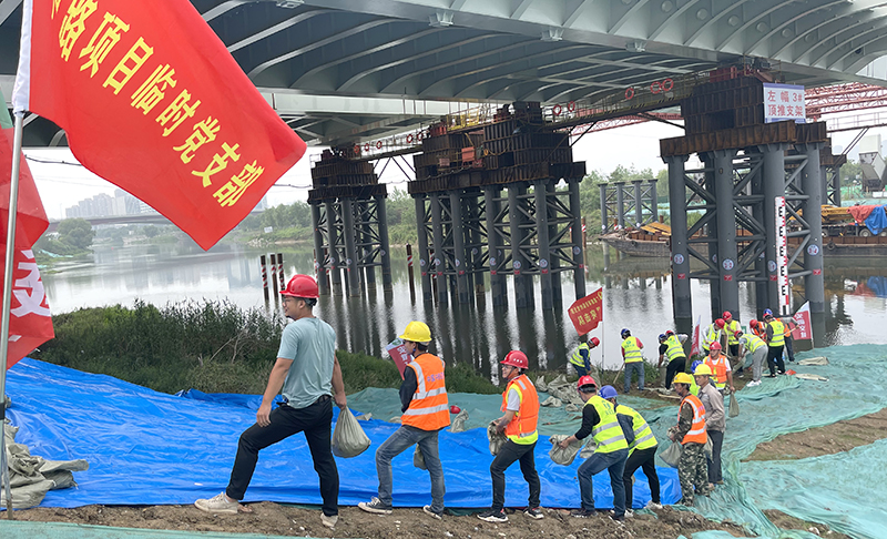本次演練背景為連續(xù)強(qiáng)降雨天氣,南淝河水位持續(xù)上漲即將突破警戒線,隨時(shí)會(huì)洪水破堤淹沒(méi)施工便道圍堰堤壩、危害周?chē)用褙?cái)產(chǎn)及生命安全……險(xiǎn)情告急!