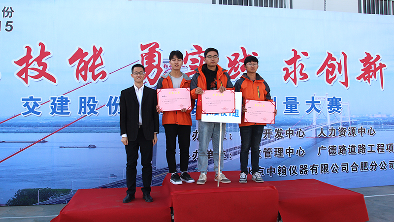 最后,交建股份副總裁吳小輝、技術(shù)開發(fā)中心總經(jīng)理宣菲分別為獲得全站儀組、水準(zhǔn)儀組團(tuán)體第一名頒發(fā)證書和獎(jiǎng)金并表示祝賀。至此,交建股份第三屆施工測(cè)量技術(shù)培訓(xùn)暨施工測(cè)量大賽圓滿落幕。