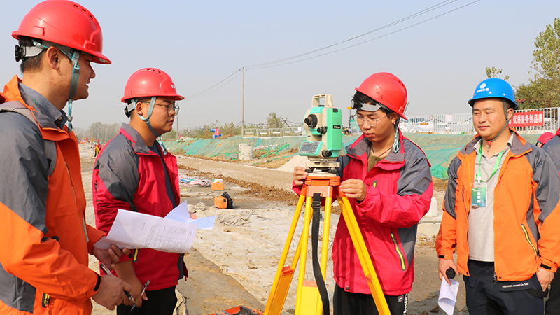 10月29日上午,在安徽交建黃河路項(xiàng)目施工現(xiàn)場(chǎng),學(xué)員們?cè)缫涯θ琳啤④S躍欲試。比賽分為“水準(zhǔn)儀+全站儀”綜合團(tuán)體賽和“全站儀架點(diǎn)”個(gè)人賽。按照抽簽分組,依據(jù)各組完成時(shí)間、操作規(guī)范性、測(cè)量結(jié)果以及第一天的理論成績(jī)綜合評(píng)判最終結(jié)果。找點(diǎn)、跑尺、計(jì)算,經(jīng)過(guò)近三個(gè)小時(shí)的激烈角逐,最終產(chǎn)生綜合團(tuán)體賽前三名、架點(diǎn)個(gè)人賽冠軍,并評(píng)選出各小組“最佳學(xué)員”。