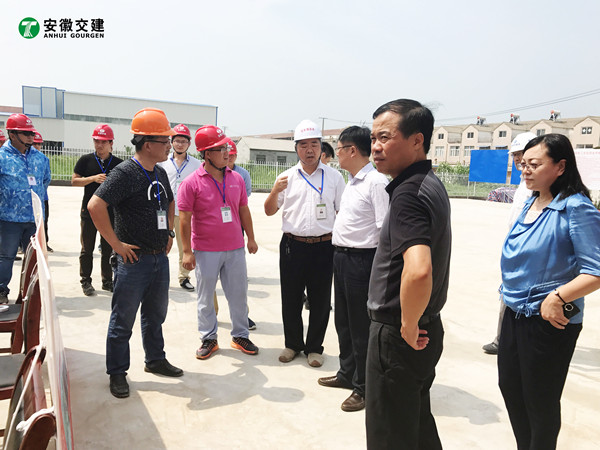7月18日,安徽省交通控股集團(tuán)總經(jīng)理錢東升、建管處處長蘇新國、項(xiàng)目辦主任鄒正明等領(lǐng)導(dǎo)一行蒞臨安徽交建滁淮高速定長段路面一標(biāo)項(xiàng)目部進(jìn)行檢查指導(dǎo)。