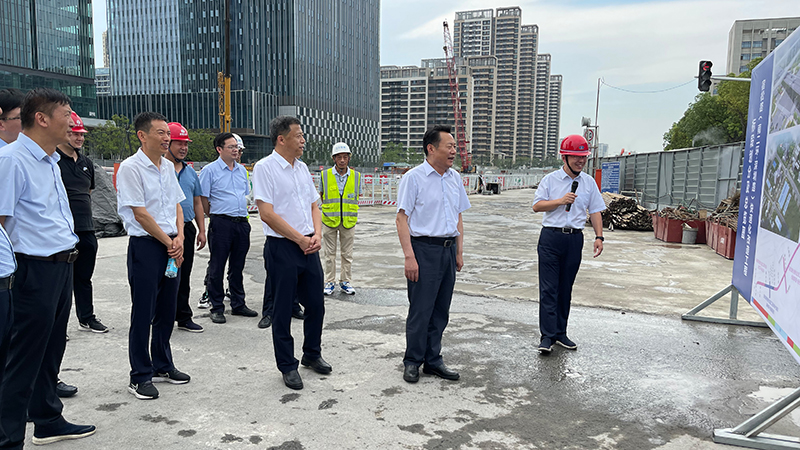 在宿松路下穿繁華大道施工現(xiàn)場,虞愛華聽取了項目概況、施工進(jìn)度等方面的介紹,對2標(biāo)段能夠在188天完成花園大道跨線橋建成通車給予了高度認(rèn)可。虞愛華對大建設(shè)工作者們在炎熱天氣下的辛勤付出表示真摯的慰問和感謝,并叮囑一線建設(shè)工人要注意勞逸結(jié)合和防暑降溫。他強調(diào),在統(tǒng)籌發(fā)展的同時,要高度重視安全管理,既要守住“看不見”的防疫安全,也要守住“看得見”的生產(chǎn)安全,堅決防范各類重大事故的發(fā)生。