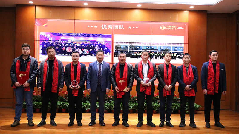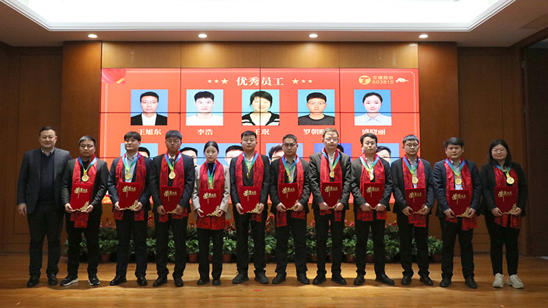 2023年公司全員凝心聚力,臨難不卻,取得了較為不易的成績,也涌現(xiàn)出了一批敬業(yè)篤行、奮輯勇進的先進榜樣。公司董事會秘書曹振明宣讀了2023年度公司優(yōu)秀表彰文件,隨后舉行了隆重的頒獎儀式,為受表彰的個人和集體頒發(fā)獎杯、證書及獎金。大會號召公司全員要以先進為榜樣,心系發(fā)展,愛崗敬業(yè),同心共贏,再創(chuàng)佳績!